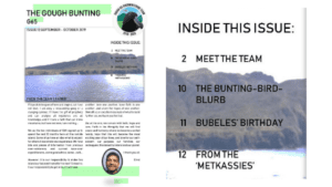 In this edition: Meet the 65th Gough Island Overwintering Team The first birthday party of G65 September weather and more... click here to view more photos of Bubele Nongwejana enjoying his birthday party. Anché Louw, Antarctic Legacy of South Africa,...