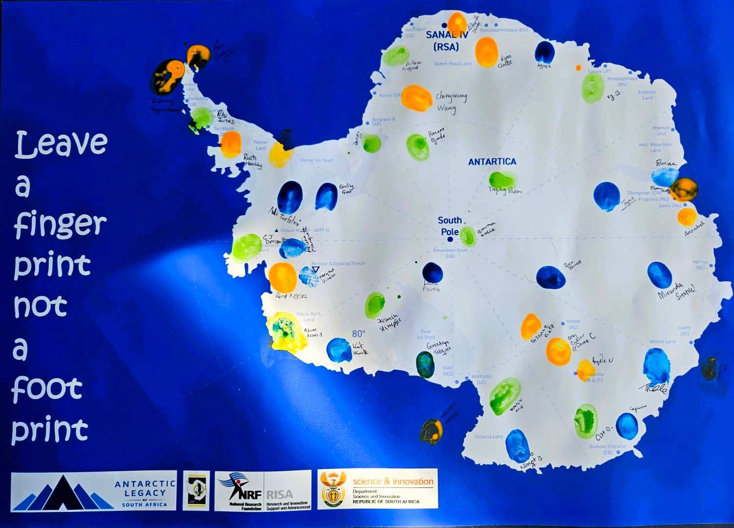 Fun during Science Communication session with adding fingerprints to an Antarctica Map