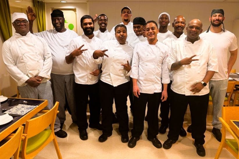 L-R: Ultimate Heli Team, Bulldozers and drivers’ with SANAE Chefs, S.A. Agulhas II Chefs on board