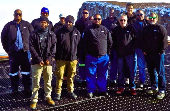At the core of the transition are the Department of Forestry, Fisheries and the Environment (DFFE) takeover personnel, who oversee inspections, infrastructure assessments, compliance requirements, and environmental protocols at SANAE IV. Their work ensures that power generation, life-support systems, communications, and safety procedures remain fully operational for the year ahead. Supporting the operation from sea to ice is the skilled helicopter team from Ultimate Heli, who transport people and cargo between the vessel and the base with precision in narrow Antarctic weather windows. (Photo: DFFE takeover personnel with Shiraan Watson -DCO)