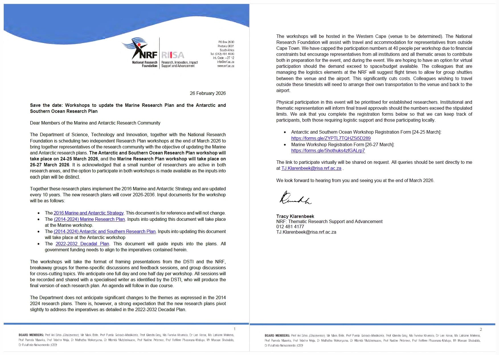 The link to participate virtually will be shared on request. All queries should be sent directly to me at TJ.Klarenbeek@risa.nrf.ac.za .