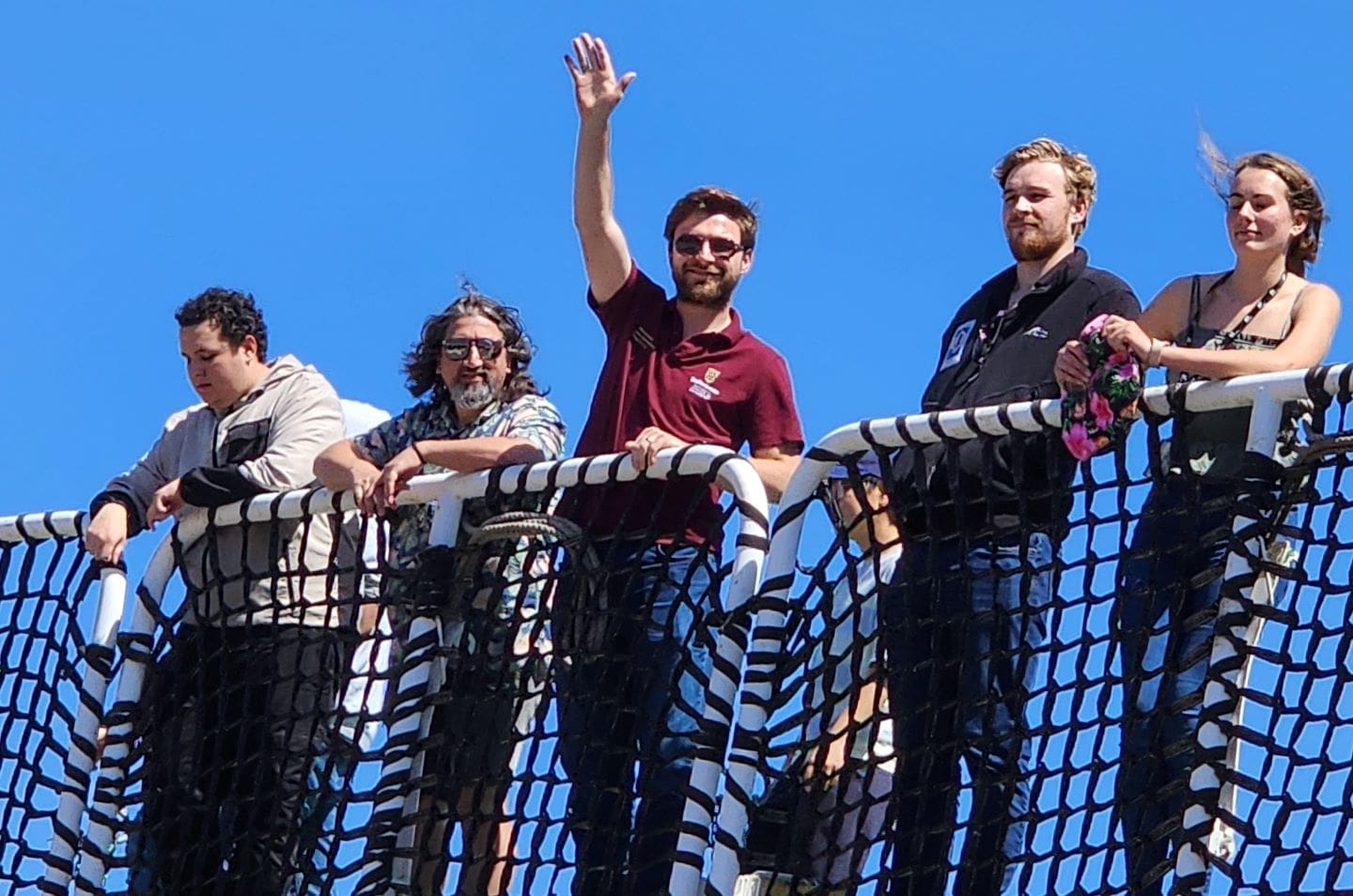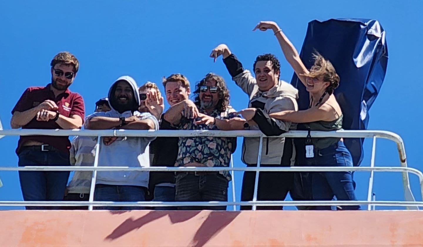 The 80th Marion Island overwintering team. This photo was taken before the last helicopter flight to the S.A. Agulhas II, at the end of the 2023 takeover. The ship departed from Marion Island to Cape Town late afternoon of 12 May 2023. Image: Michelle Risi.