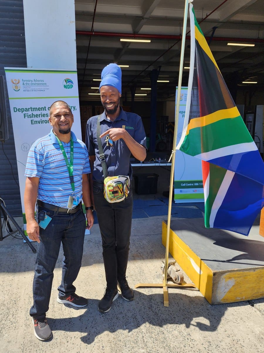 DFFE preparations for welcoming ceremony(image left). Zaid Watson and Mawonga Mandleni provided entertainment while everyone was waiting (image right)