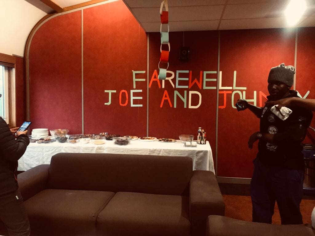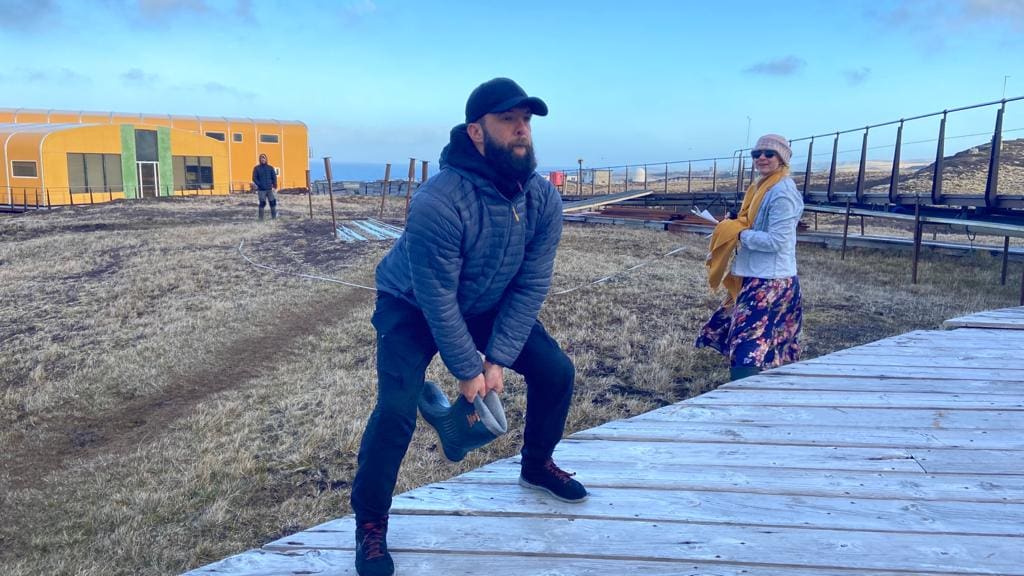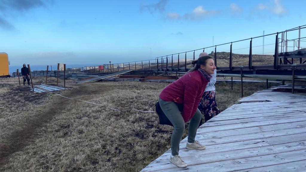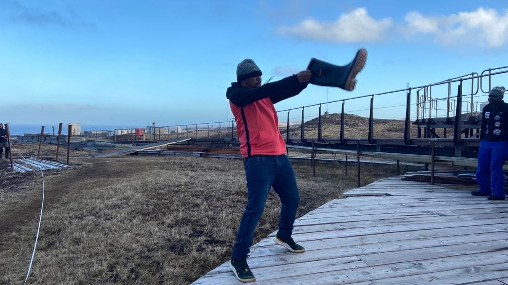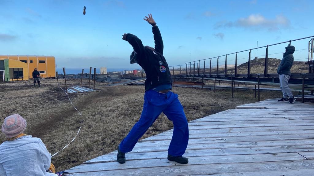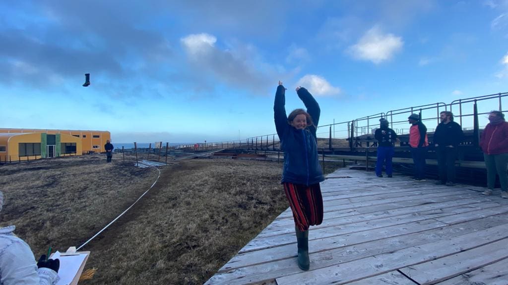 The Marion Overwintering team organised a Boot Throw Competition and a farewell for the Plimsoll Productions film crew John and Joe.