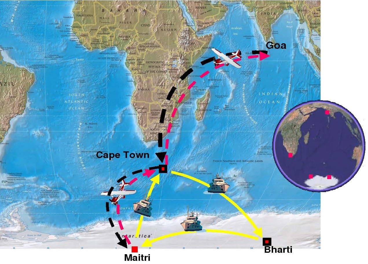 from Goa to Antarctica and back is taken care of by ESSO-NCPOR. Travel only available in Summer Season