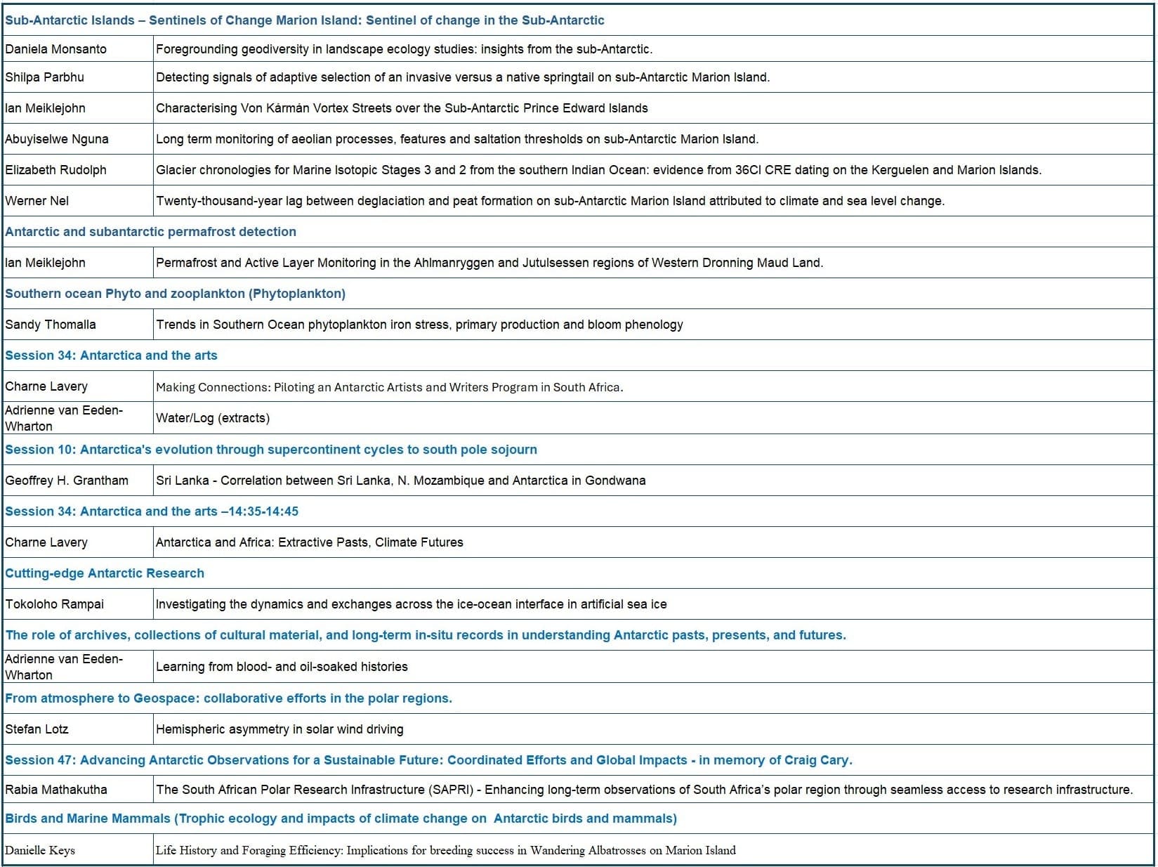 - Ria Olivier (Antarctic Legacy of South Africa): Science outreach, awareness, and the role of transdisciplinarity in communication
