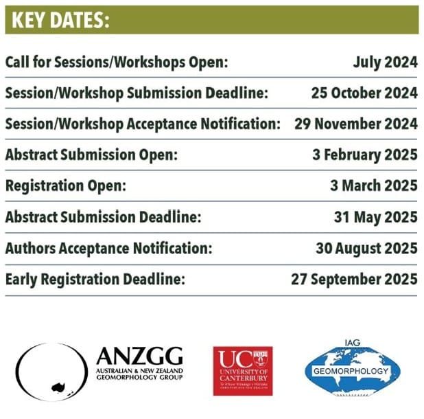 “Dear Friends and Colleagues, We are putting a session together for the International Conference on Geomorphology that will be held in Christchurch in February 2026. As you can see the session description is very open, so we can really put a nice diverse session together. We would like to ask you to consider submitting an abstract to the session.