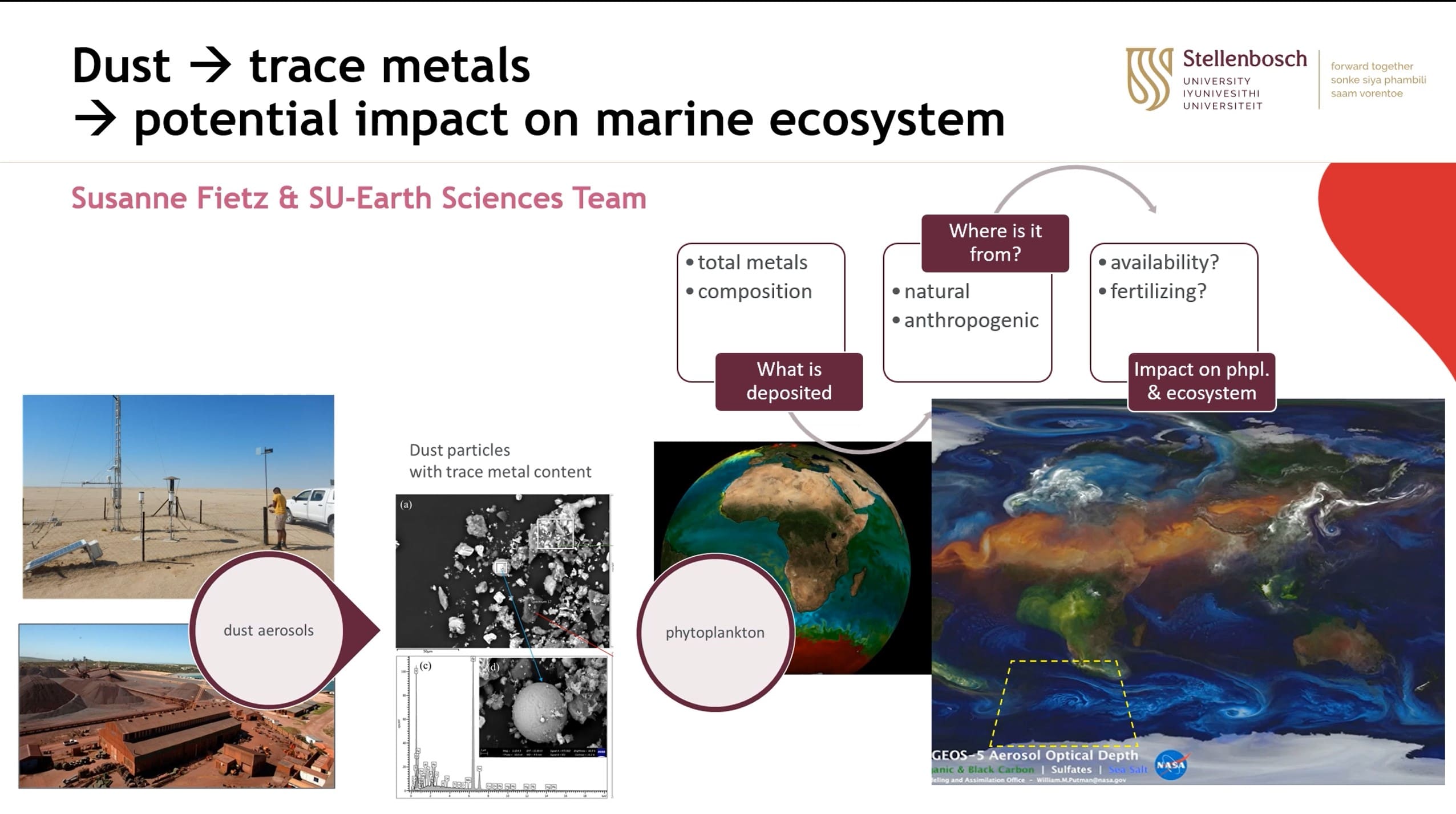 - Emtia Wium: Impact of metals in aerosols and dust on marine phytoplankton: South Africa. (Abstract)