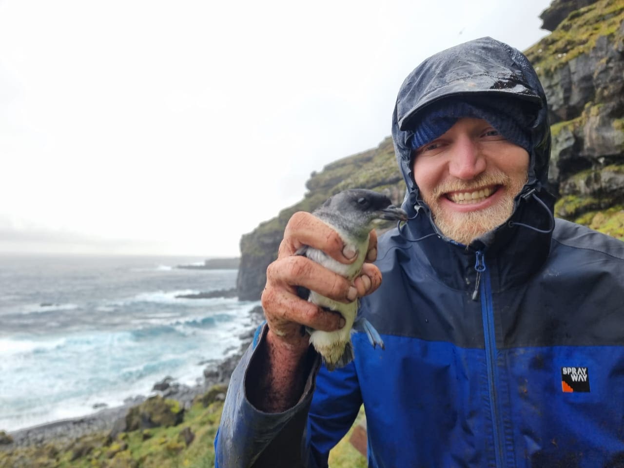 (left) Michelle Jones with Grey-headed Albatross and (right) Chris Jones with Common Diving Petrel