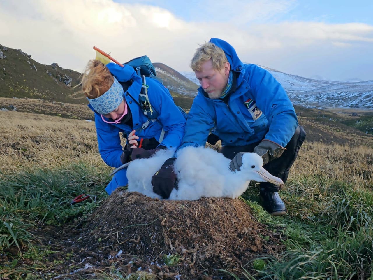 Above: Chris and Michelle Jones working with the Wandering Albatross during overwinter period