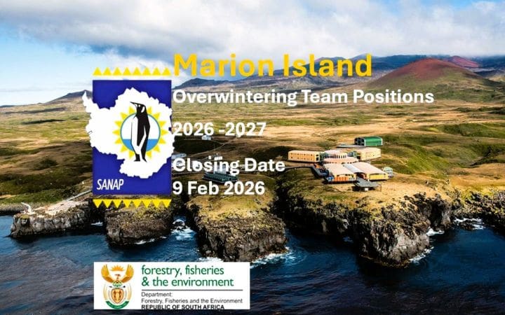 Applications are still open for the following positions on the sub-Antarctic, Marion Island for the overwintering period (April 2026 to May 2027)