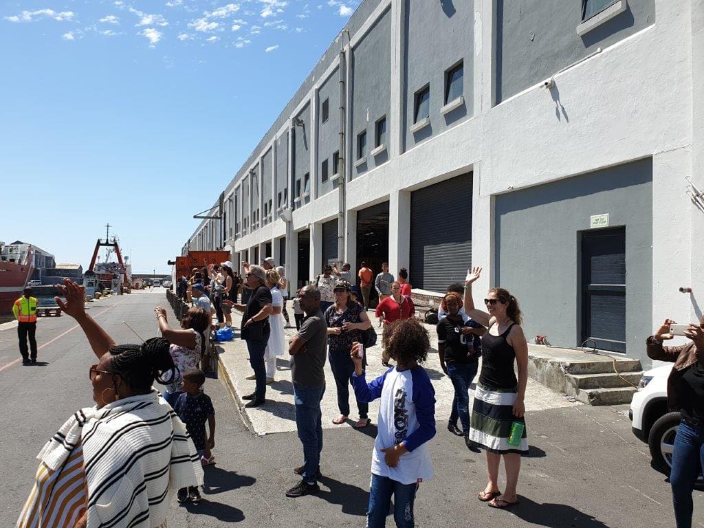 Mariëtte Wheeler, Bruce Dyer, Linda Clokie, Heine Smith and Mardené de Villiers- Friends from the Antarctic Legacy of South Africa at departure of SA Agulhas